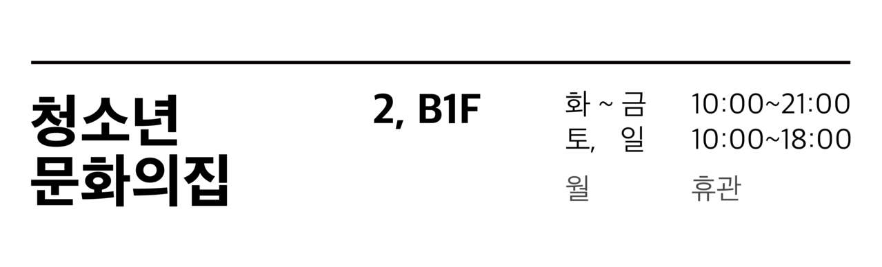 운영시간 : 화~금 10:00~20:00 토, 일 10:00~18:00(매주 월요일, 법정공휴일 휴관)