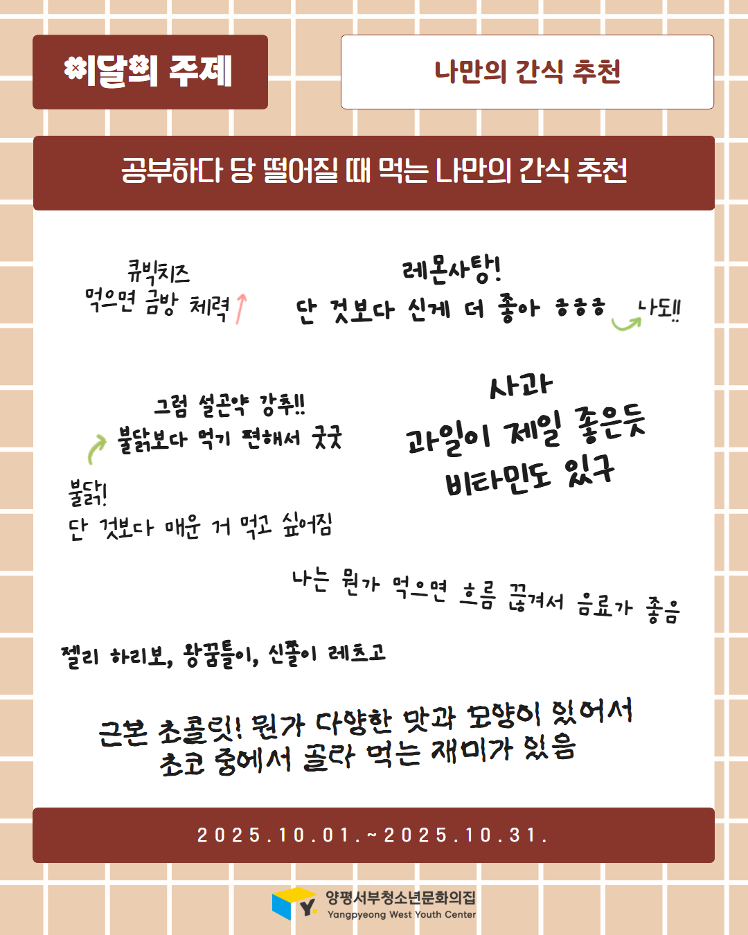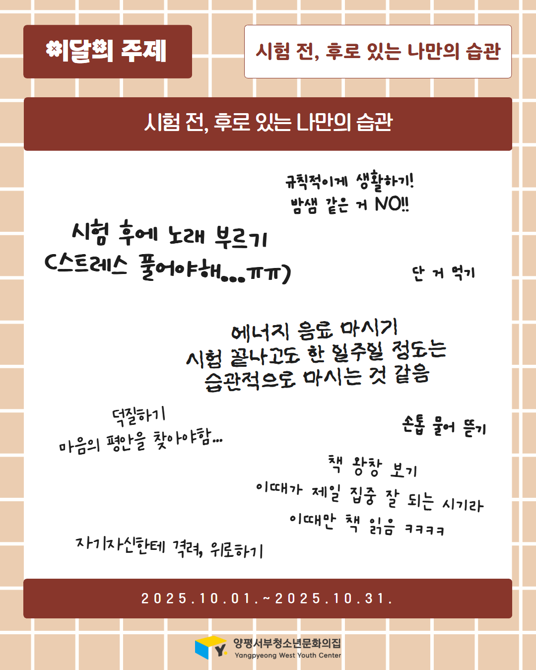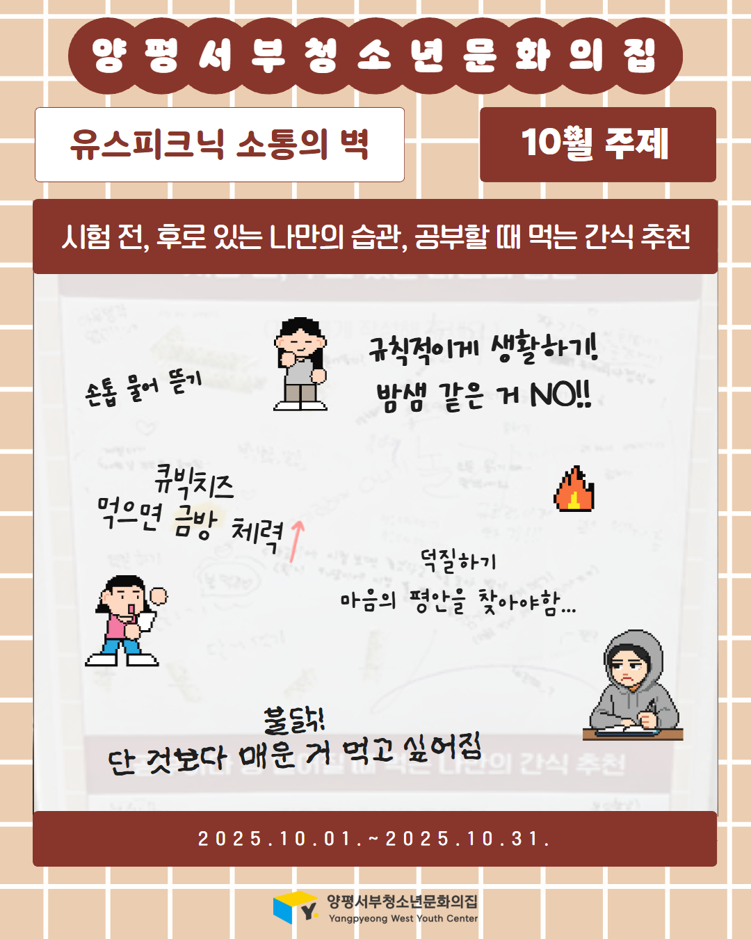 ์ ์คํผํฌ๋ ์ํต์ ๋ฒฝ์์๋ ์ฒญ์๋ ๋ค์ ๊ณต๋ถ ์ต๊ด๊ณผ ๊ฐ์ ์ทจํฅ์ ํจ๊ป ๋๋์์ด์! โ๏ธ